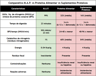 - Gera < 1% de resíduos metabólicos, contra os 68-84% produzidos pela proteína alimentar.